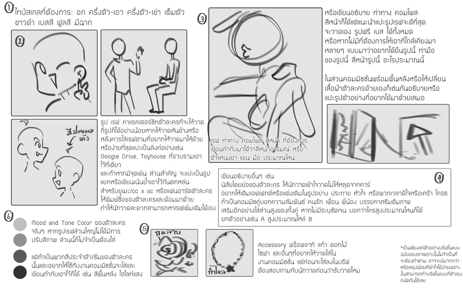 ท่าทาง คอมโพส สีหน้าที่ต้องการ เขียนบรรยายมาได้แค่ไม่กำกวมหรือแปะเป็นรูปไปเลยดีที่สุด หากไม่มีตายตัวเราจะลองดราฟให้เลือกอีกที